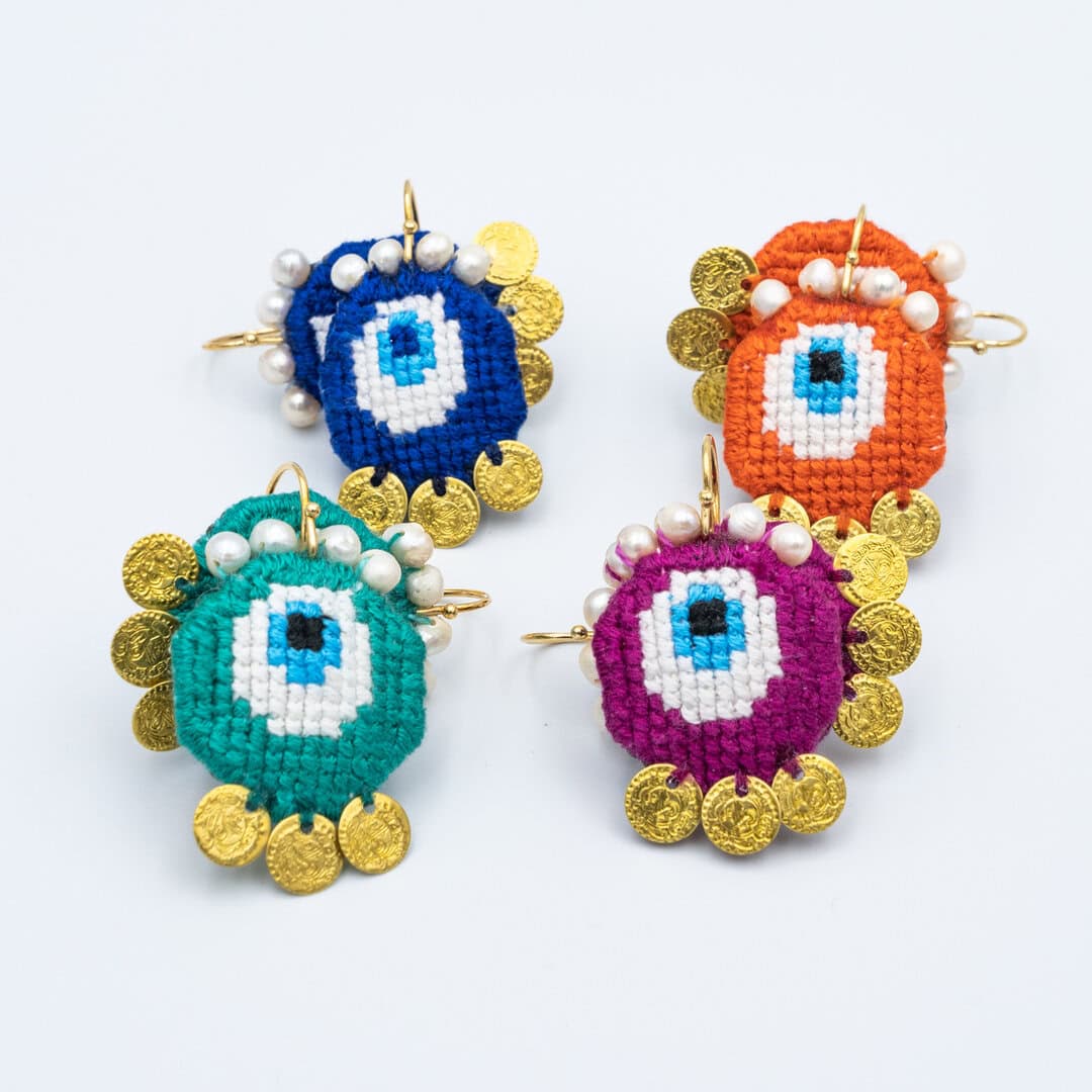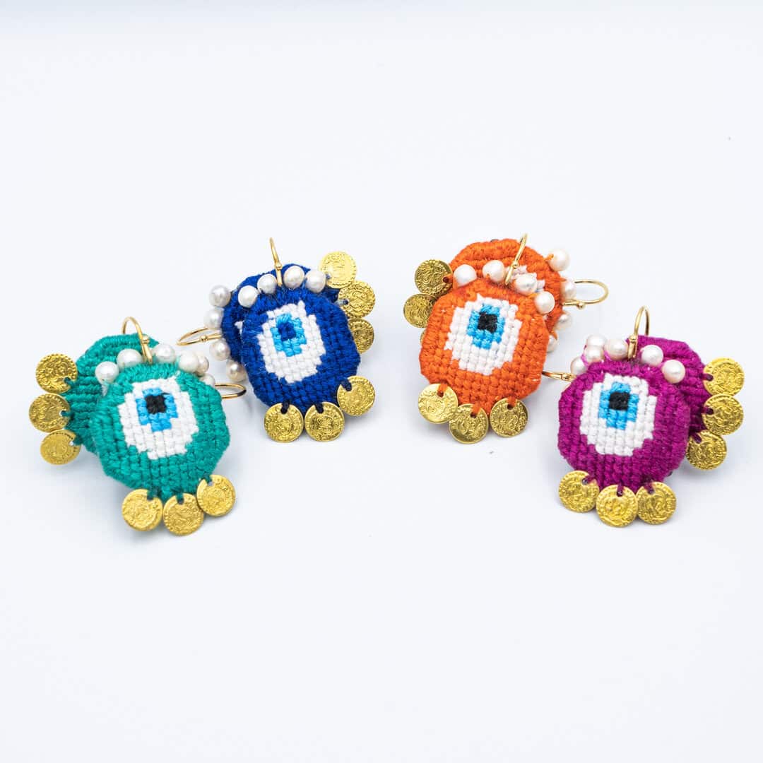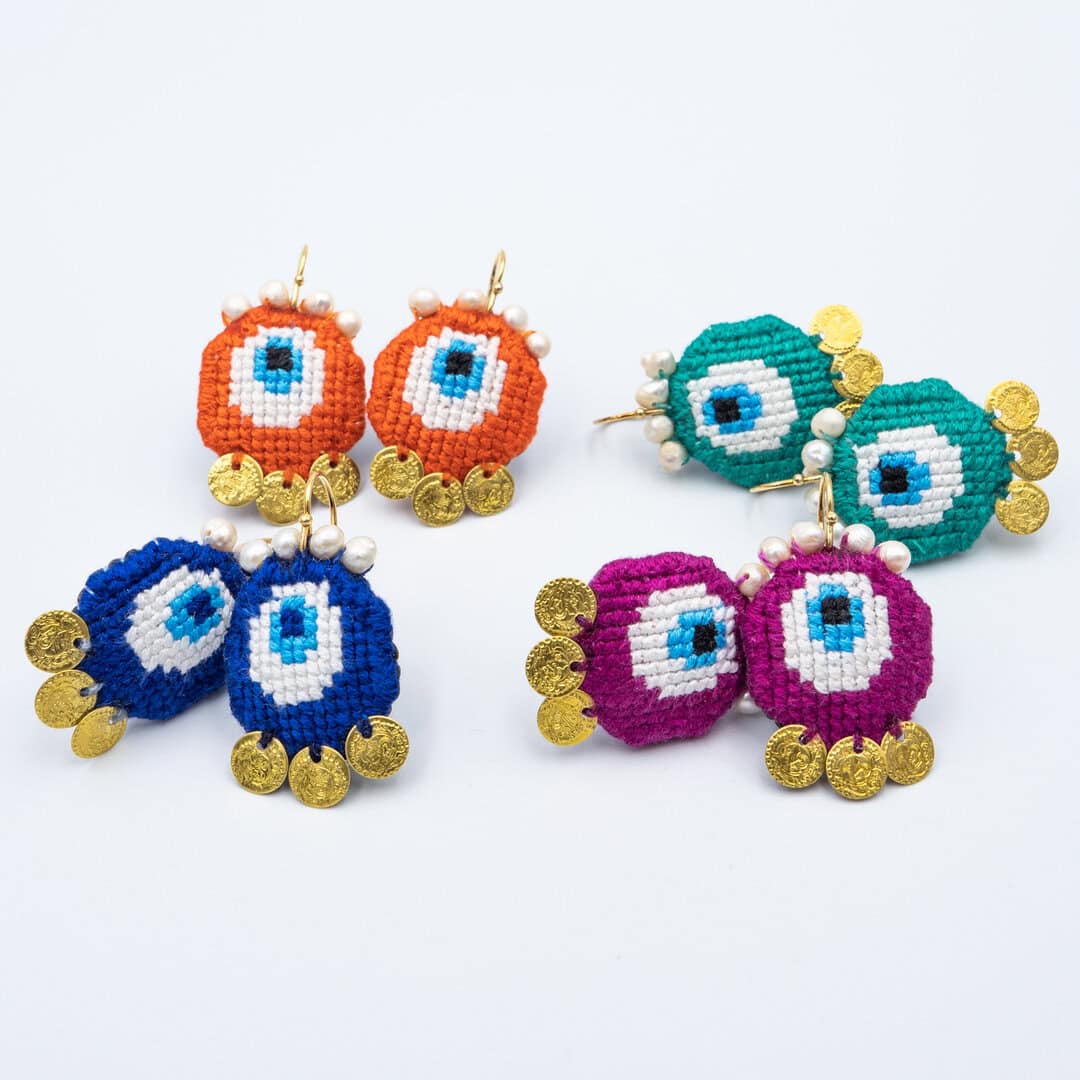 EVIL EYE EMBROIDERED EARRINGS (summer edition)