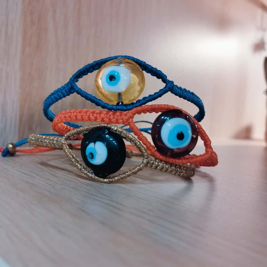Μετά από δοκιμές σε διάφορα σχέδια αποφασίσαμε να αφήσουμε το μάτι χωρίς περιττά στοιχεία έτσι ώστε να είναι το κεντρικό στοιχείο του βραχιολιού.