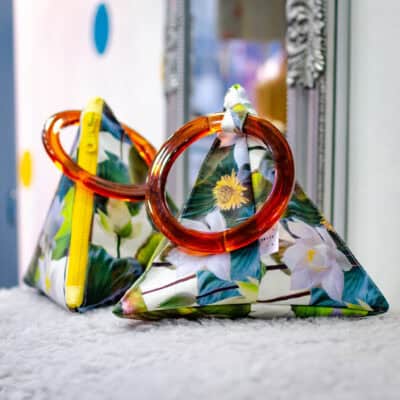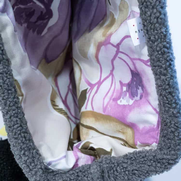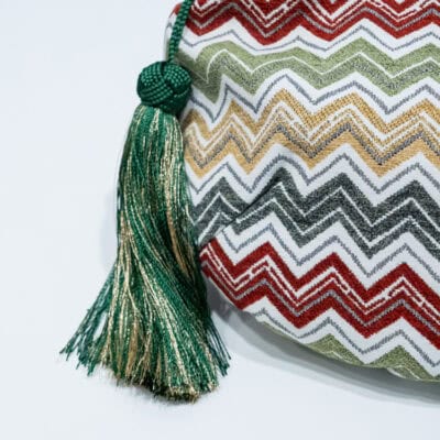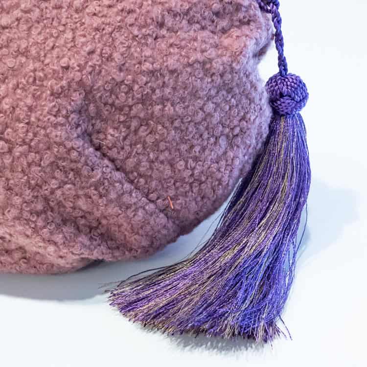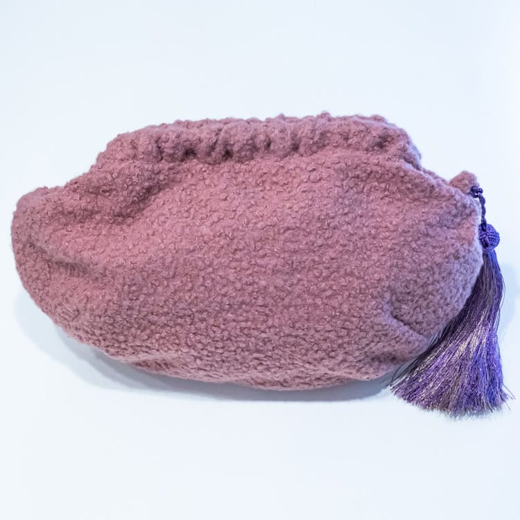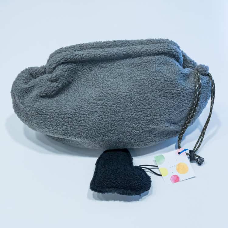 Η ροζ έχει φούντα μεταξωτή στο πλάι και η γκρι ορειβατικό κορδόνι που μπορεί να χρησιμοποιηθεί ως χεράκι για να την κρατάτε.
