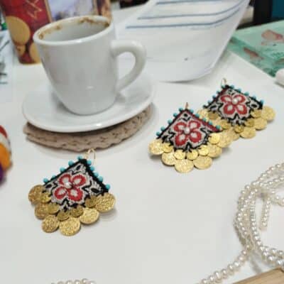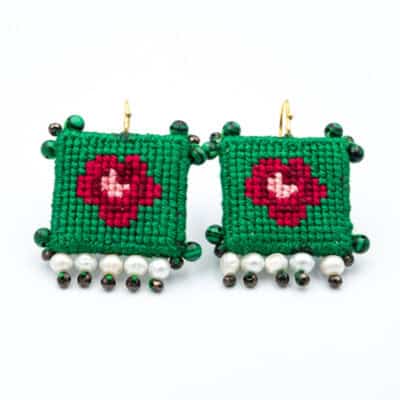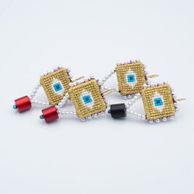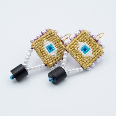 Τα σκουλαρίκια μας κεντημένα βελονιά βελονιά είναι μικρά εργόχειρα που κοσμούν τα αυτιά σας.