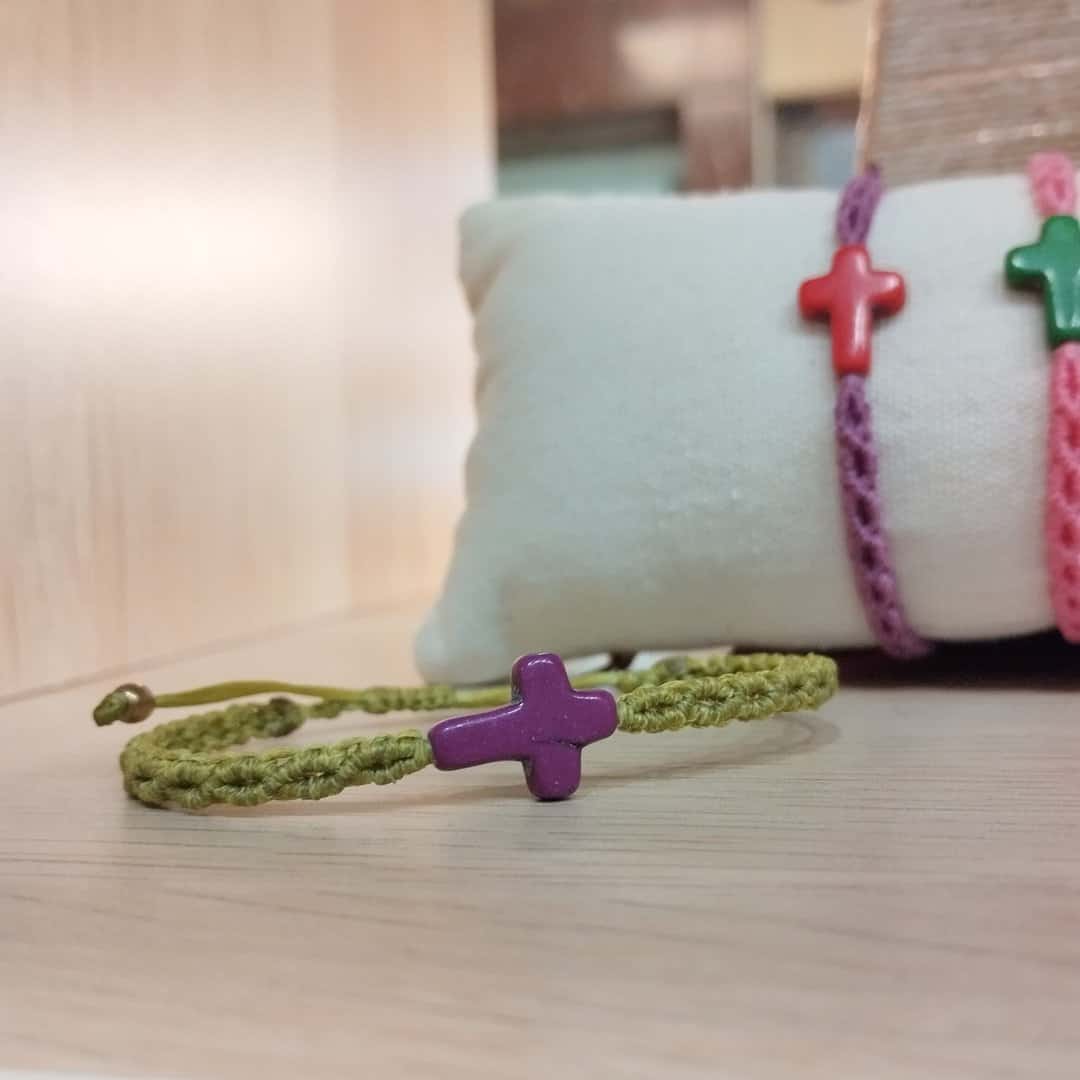 Βραχιόλια με πλέξη μακραμέ και σταυρουδάκια χαολίτη.
