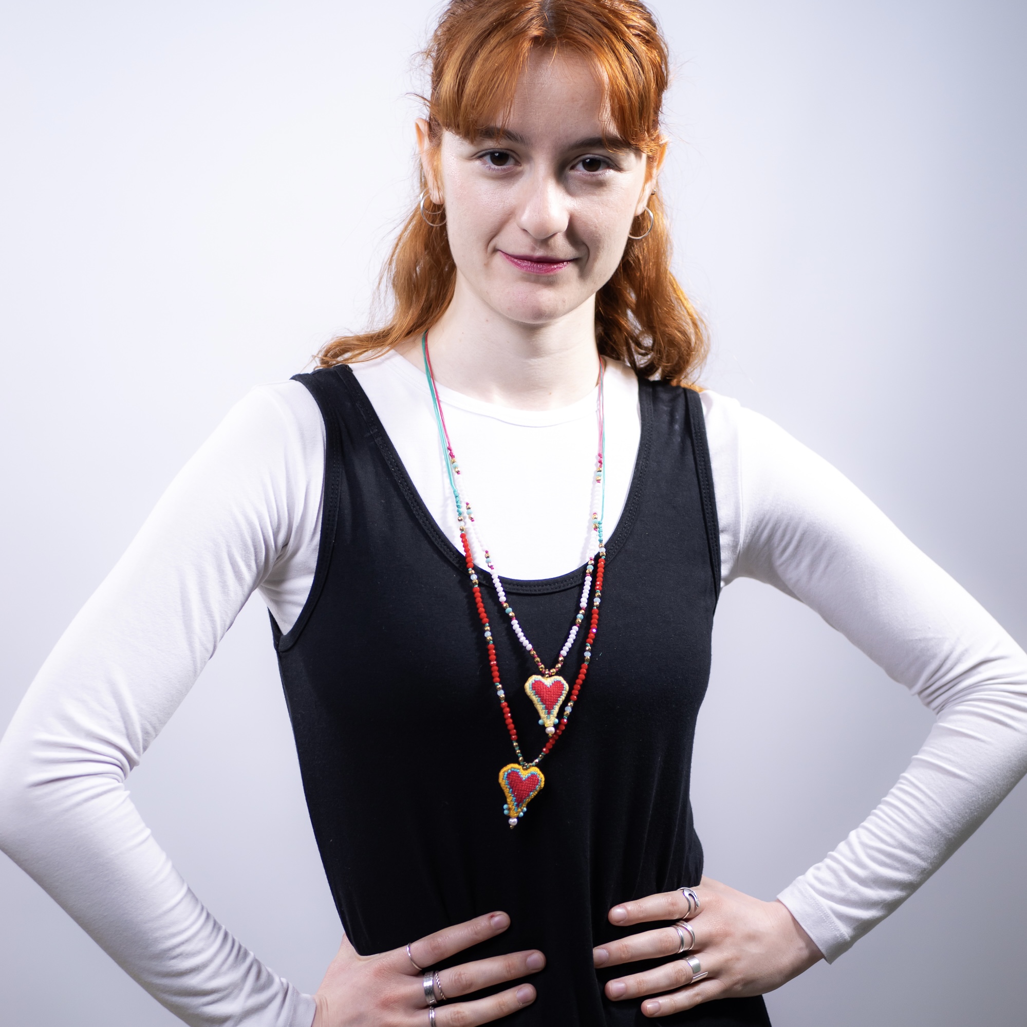Πολύ όμορφα κολιέ με κεντημένη καρδιά σταυροβελονιά σε πολύ λεπτό καμβά.