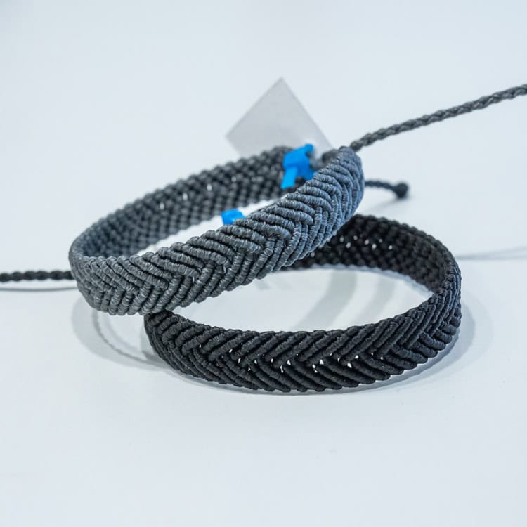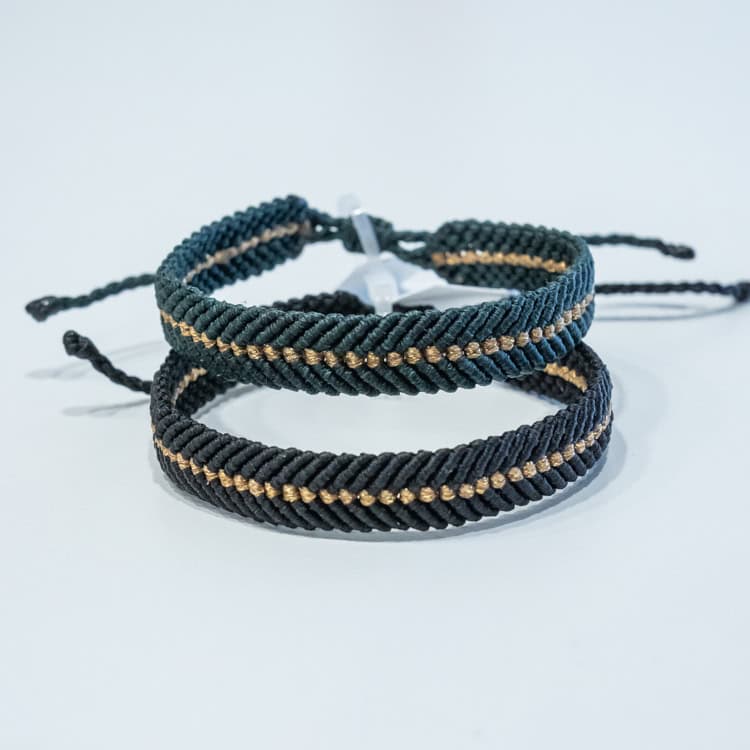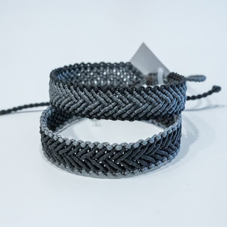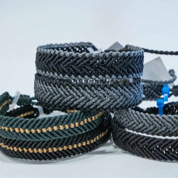 Αντρικά βραχιόλια τύπου σεβρόν πλεγμένα με μακραμέ κόμπο κόμπο.