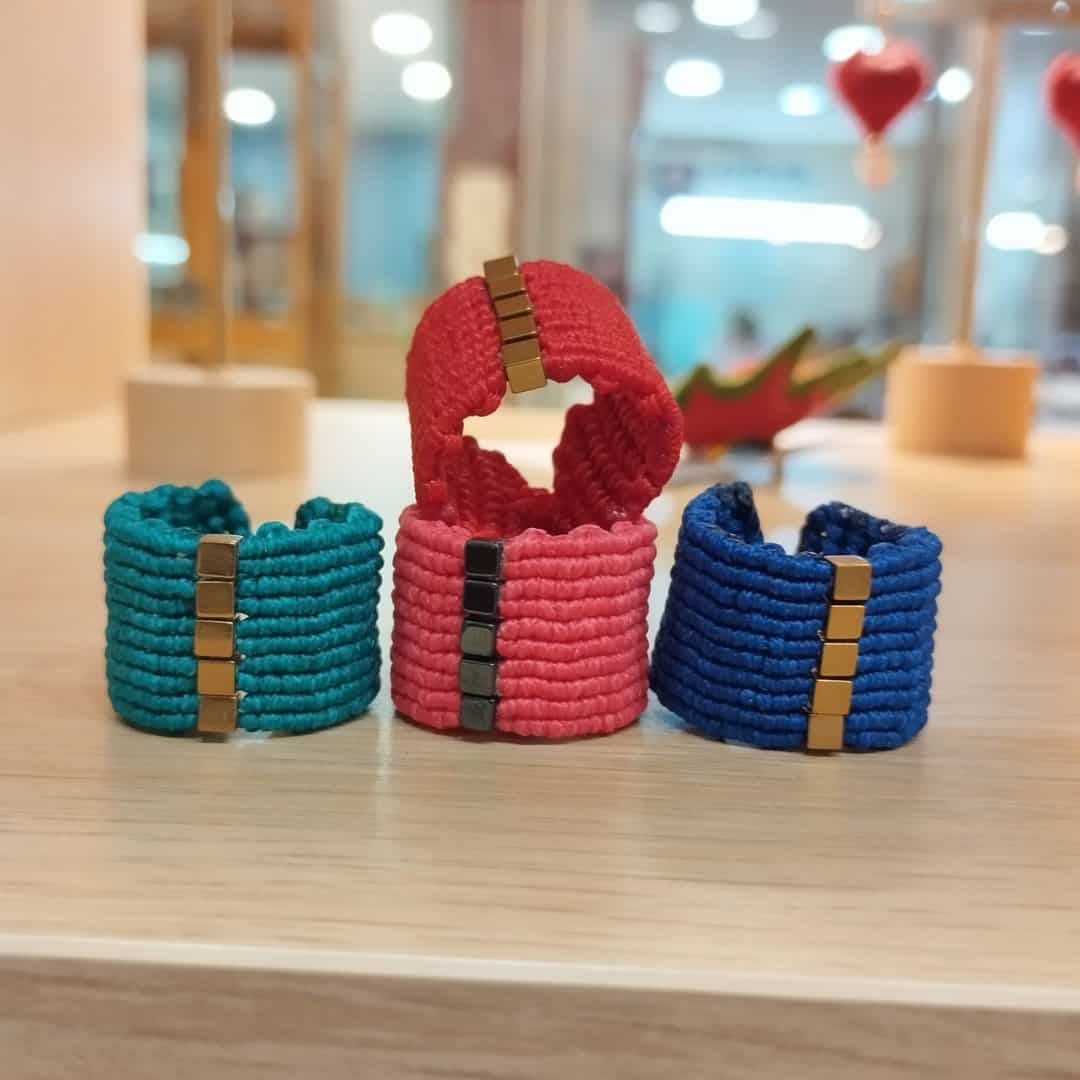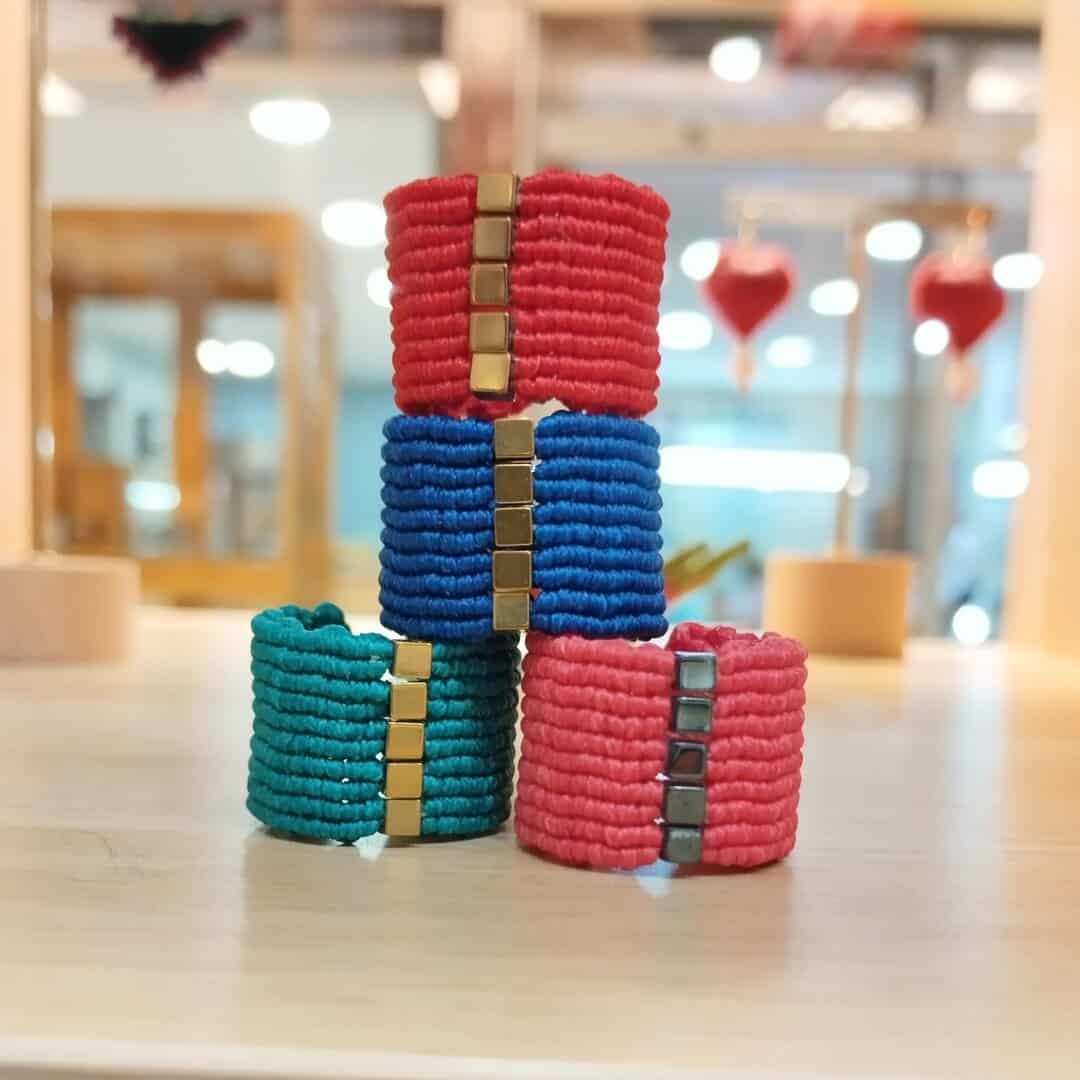 Μακραμέ πλέξη δεμένα με αιματίτες. Το μέγεθος της φωτογραφίας σε medium.