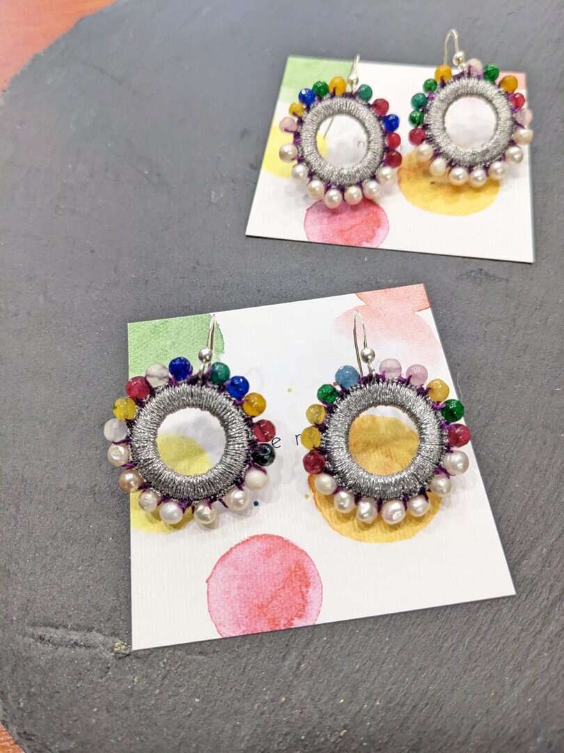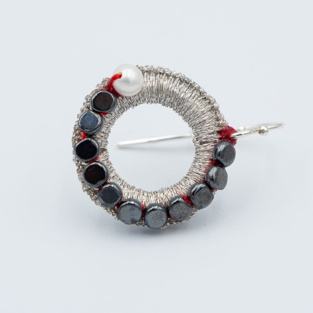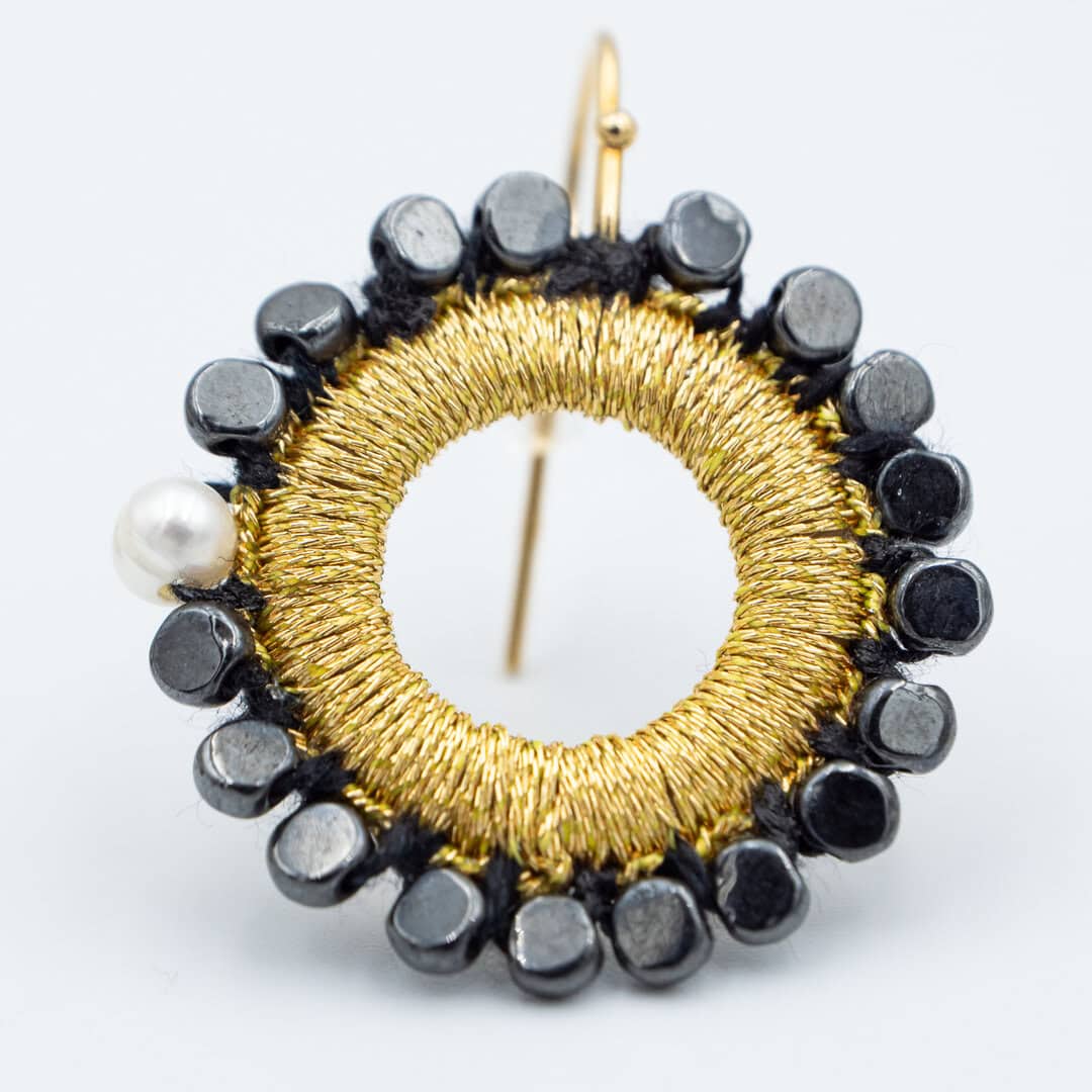 Σκουλαρίκια κύκλος πλεγμένα με ασημοκλωστή ή χρυσοκλωστή στο χέρι.